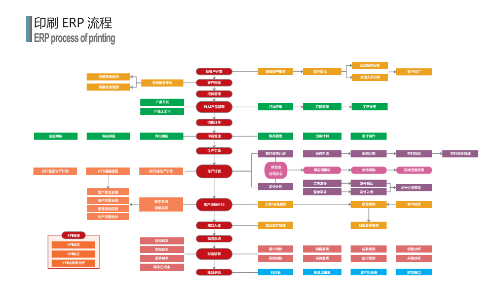 为大型印刷企业提供线上线下连接与融合的信息化服务,在解决产品研产供销财一体化、精细化管理的同时,打通企业管理运营的各个环节,为企业提供信息化支撑。通过信息化建设,实现管理业务全覆盖、过程全记录、结果可预测,促进管理转型升级,逐步实现数字化与智能化。